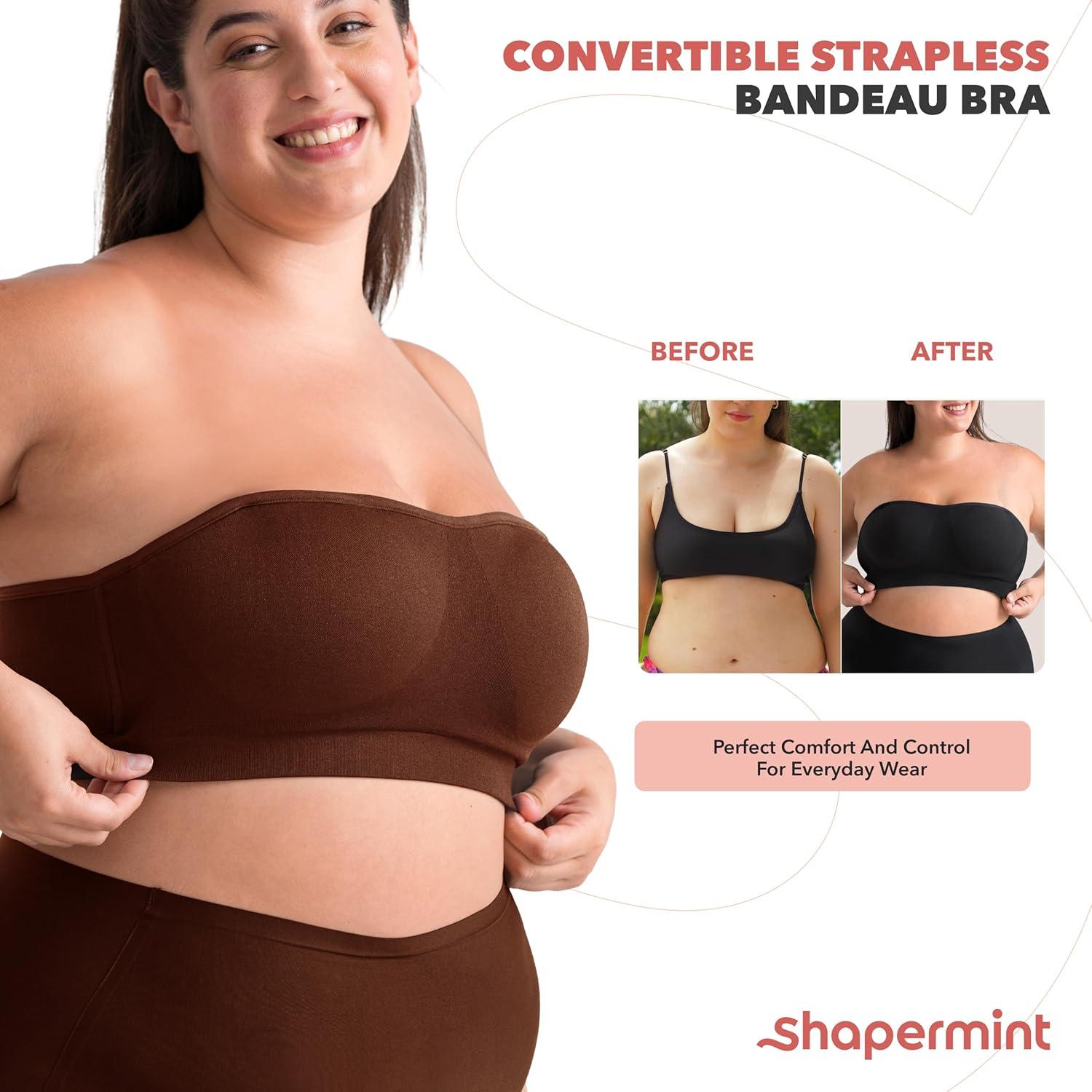 SHAPERMINT Strapless Bra – Bandeau top, Strapless Bras for Women, Plus Size Lingerie for Women, Free Clear Bra Straps(Chocolate)