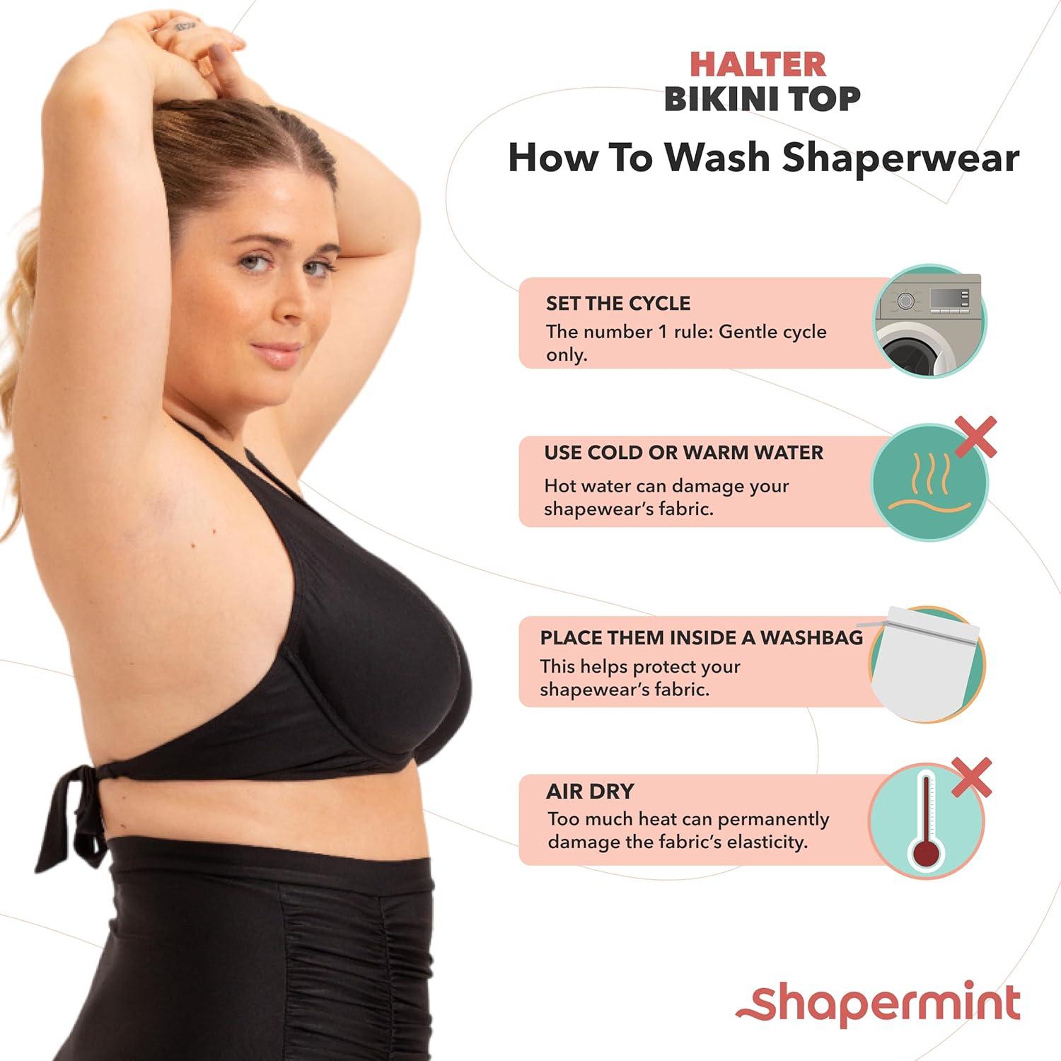 Make a statement on your next beach or pool day with the Shapermint Essentials Full Coverage Halter Bikini Top. With adjustable neck and waist ties, you can customize the fit of this bikini top to your exact body shape. The soft wire ensures maximum comfort and support while you are in the water, while the high-quality fabric is both comfortable and breathable. This full coverage design gives you the perfect amount of coverage for a modest look. Enjoy a secure and comfortable fit while you lounge in the sun or take a dip in the ocean with this adjustable halter bikini top.